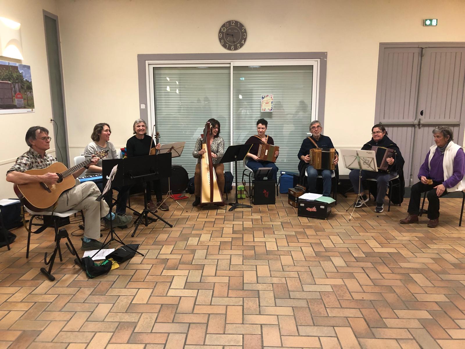 La rencontre des ateliers, c'est un beau moment d'échange pour tous les ateliers de Trad'aMuse avec une trentaine de participants cette année.