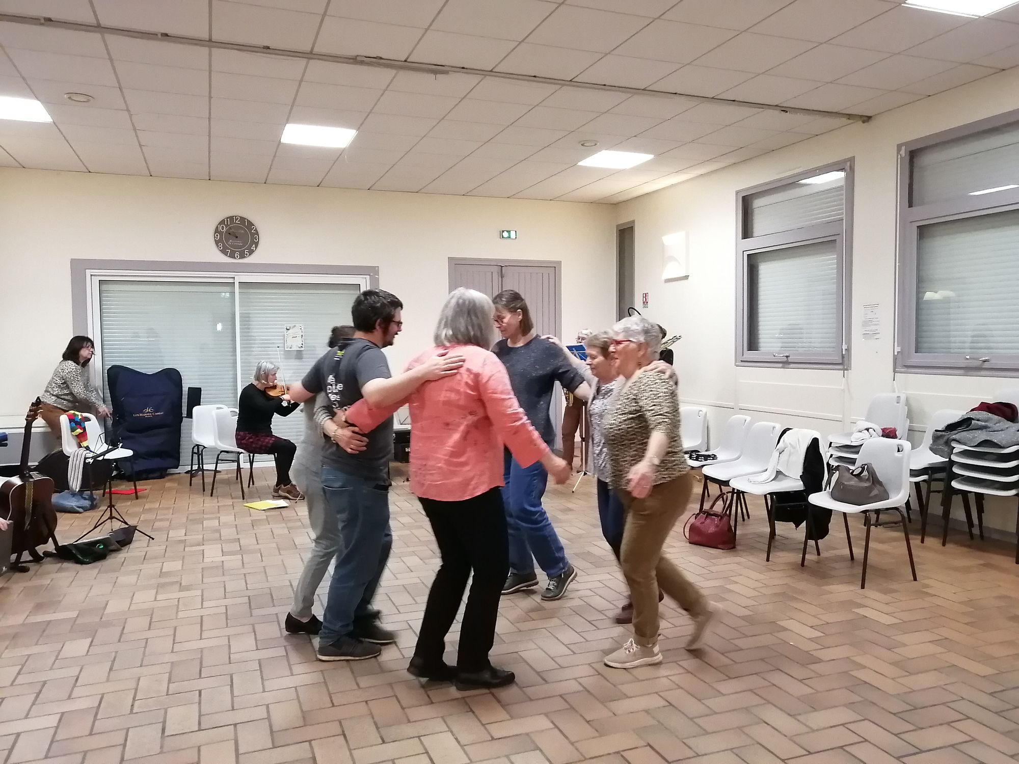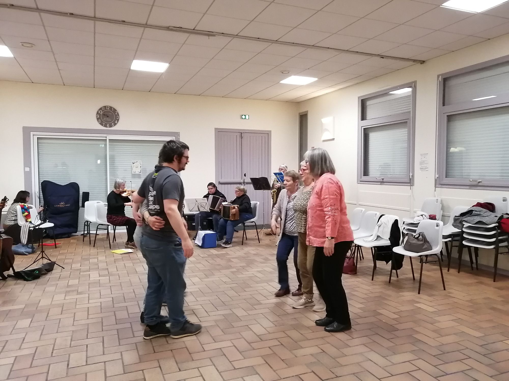 Les danseurs et danseuses rassasiés ont pu dansé Hornpipe, Polkas irlandaises,... animés par l'atelier de musique irlandaise et même une danse "assise" venant d'Acadie sur un reel irlandais ! Puis l'atelier de musique d'ensemble a poursuivi la soirée avec des bourrées (Bourrée à 6!) et plein d'autres danses... Bref, une belle soirée partagée comme on les aime à Trad'aMuse !