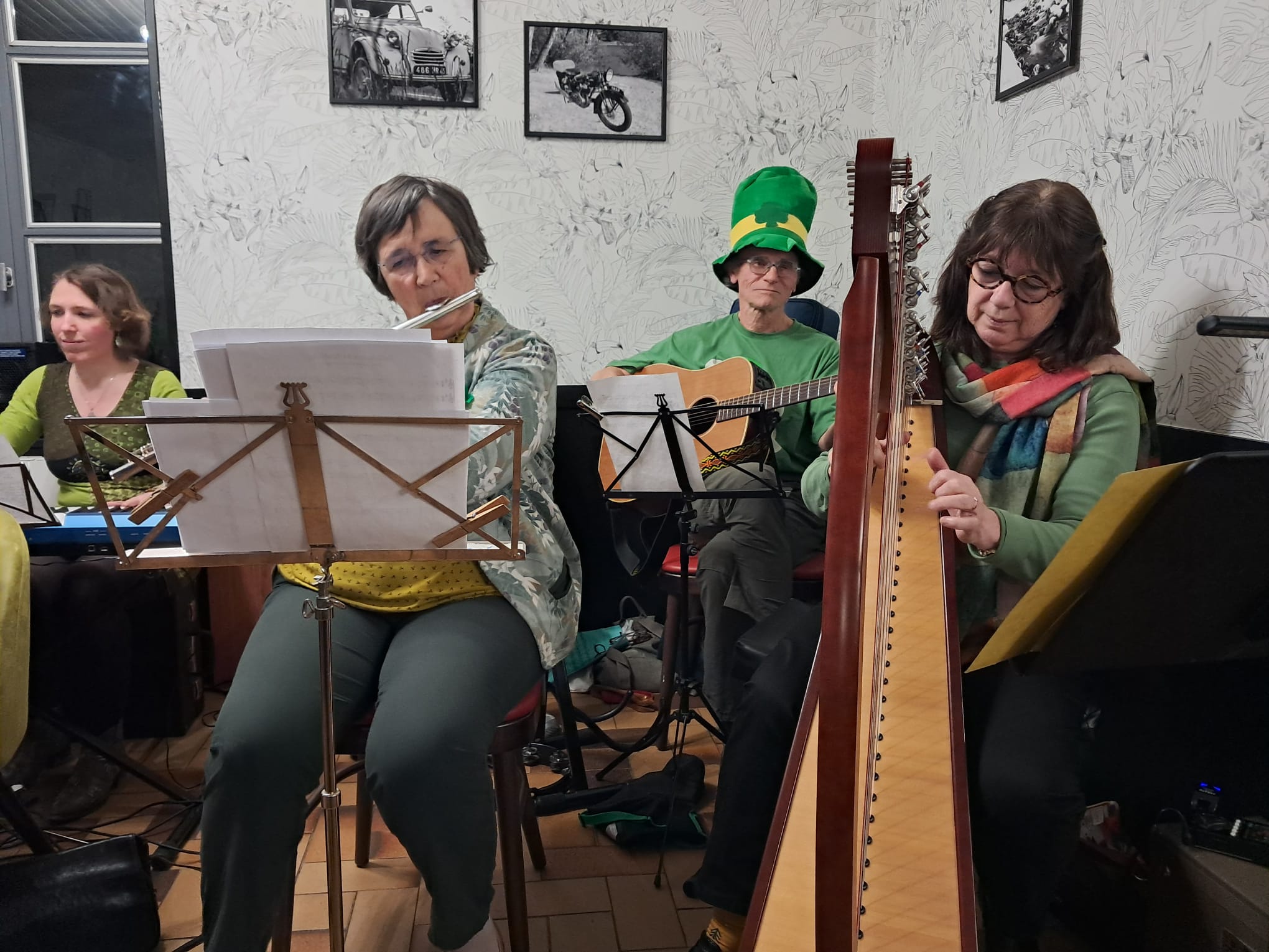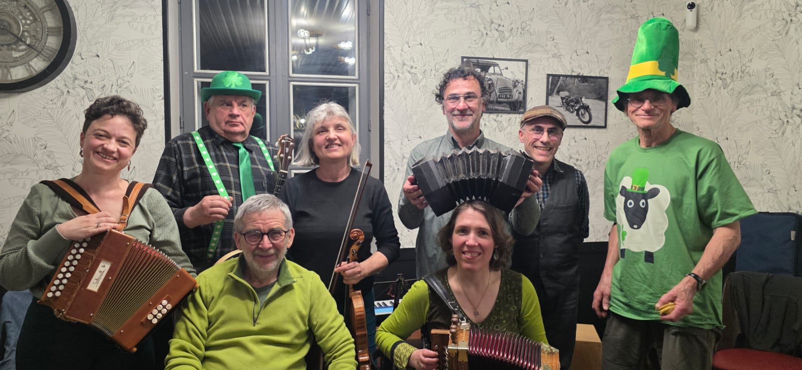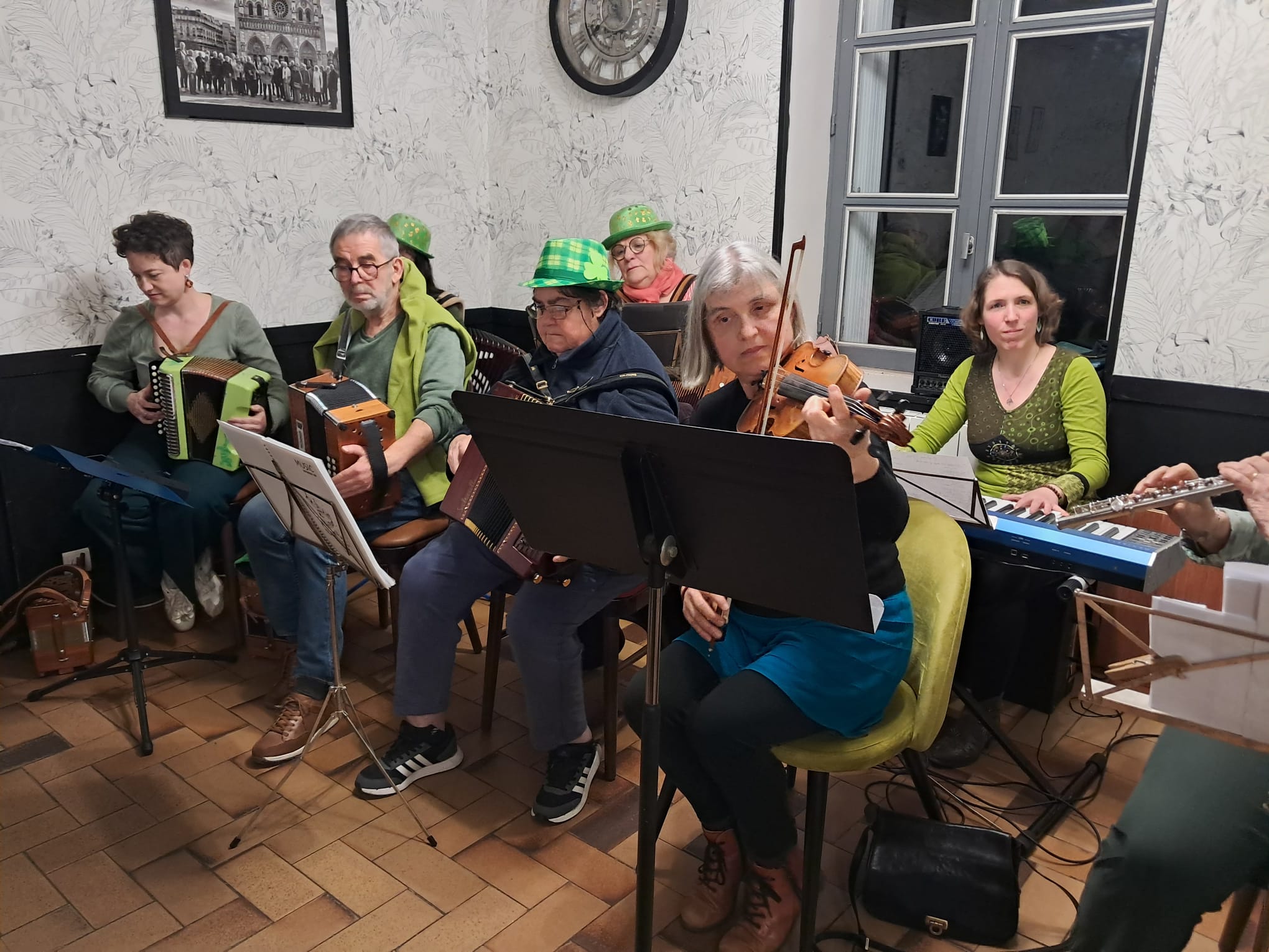 Soirée Saint Patrick réussie avec ambiance festive, bières et musiques trads irlandaises animées par l'atelier de musique irlandaise de Trad'aMuse et le groupe "Pintes et Veillées"!